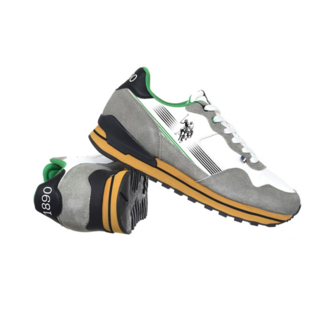 U.S. Polo ASSN Férfi tornacipő, alacsony szárú, fűzős, szürke színű, márkajelzéssel.