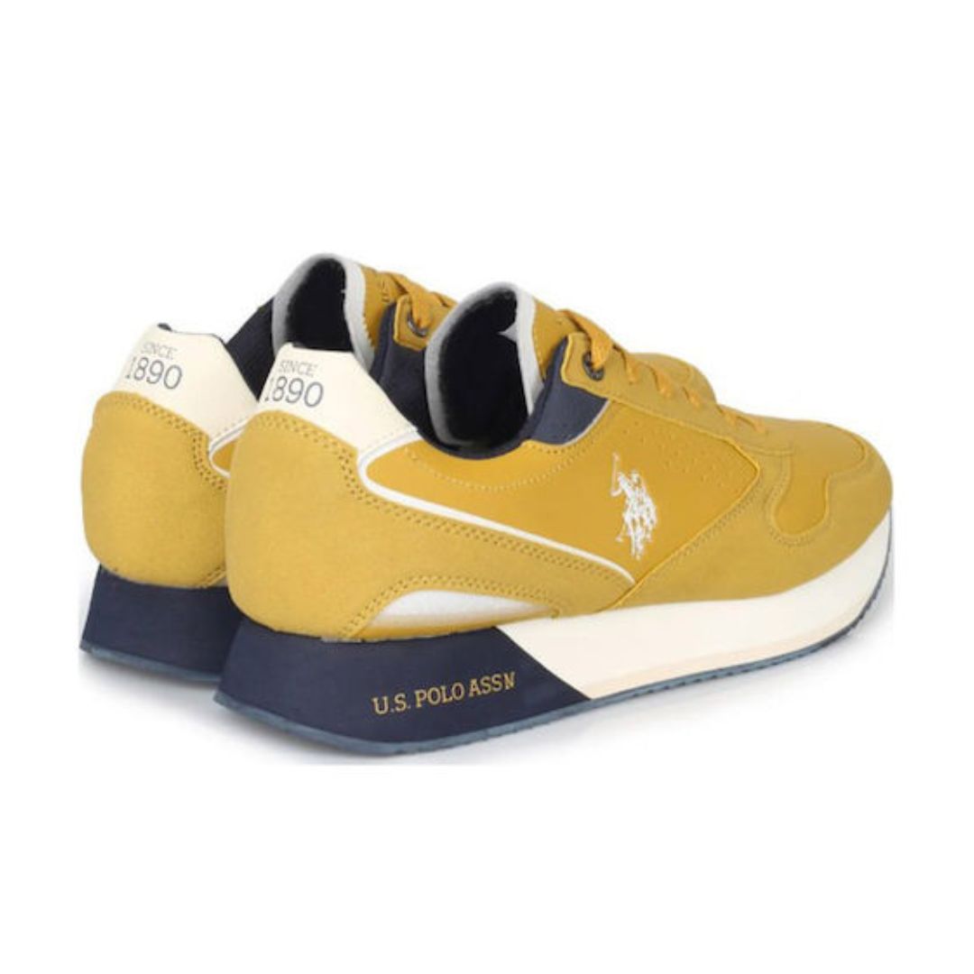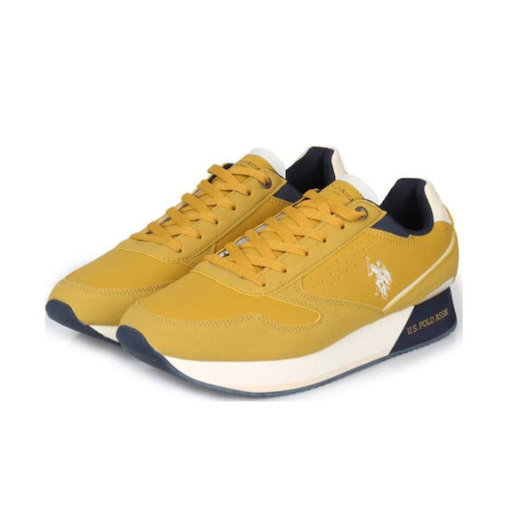 U.S. Polo ASSN Férfi tornacipő, alacsony szárú, fűzős, Sárga színű, márkajelzéssel.