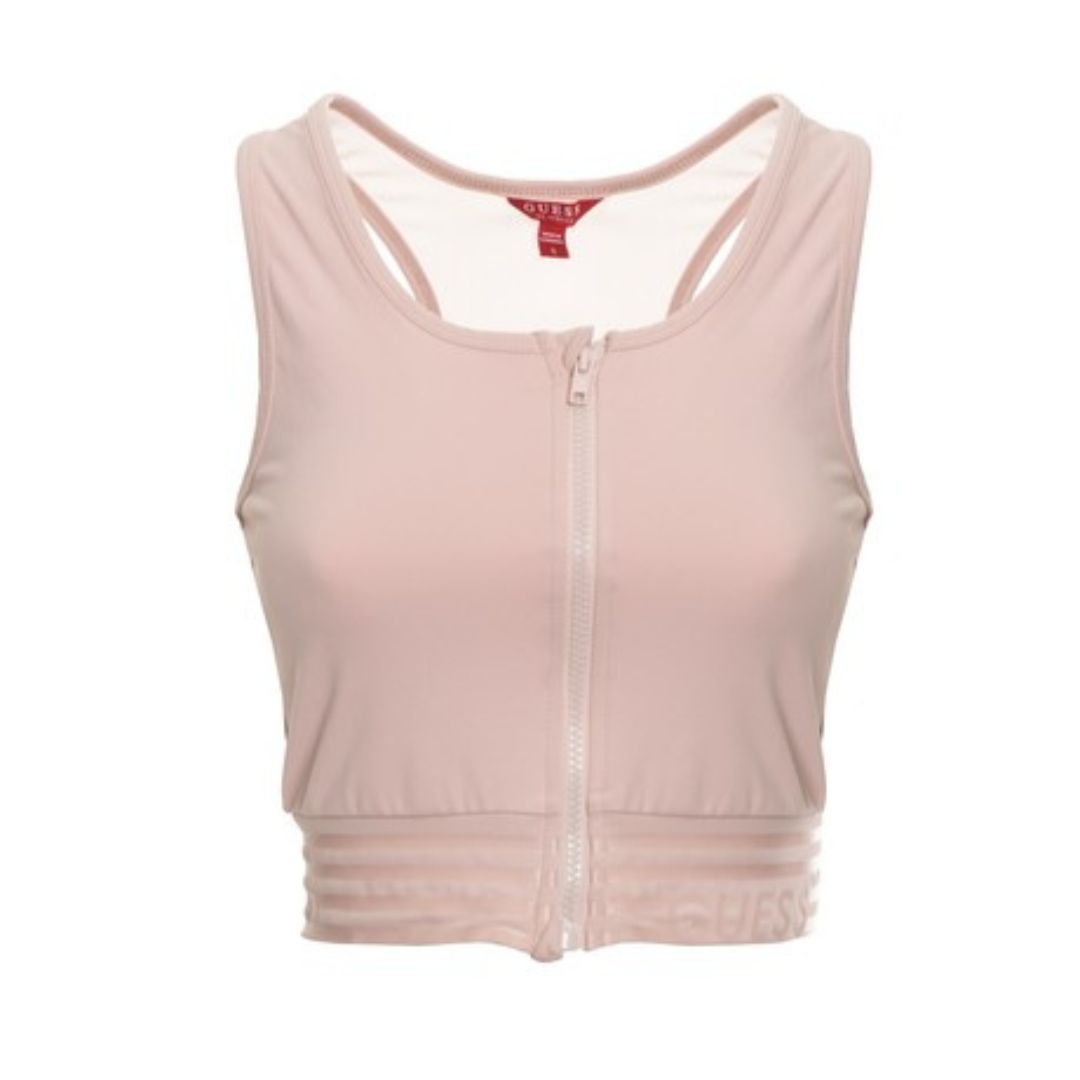 Guess női felső, rózsaszín, ujjatlan, elöl cipzárral nyitható.