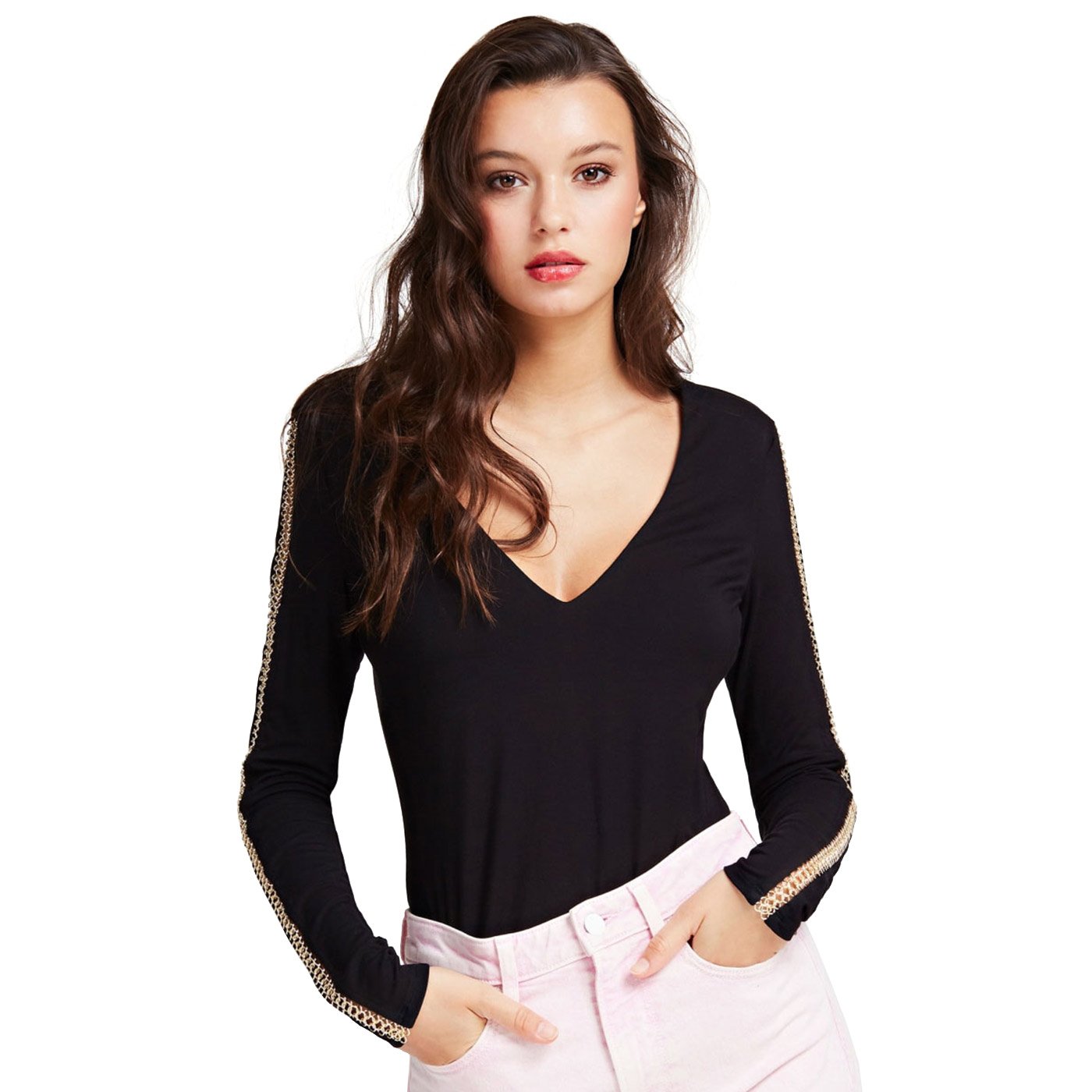 Guess Női felső, hosszú ujjú, v-nyakú, ujján lánc díszítéssel.