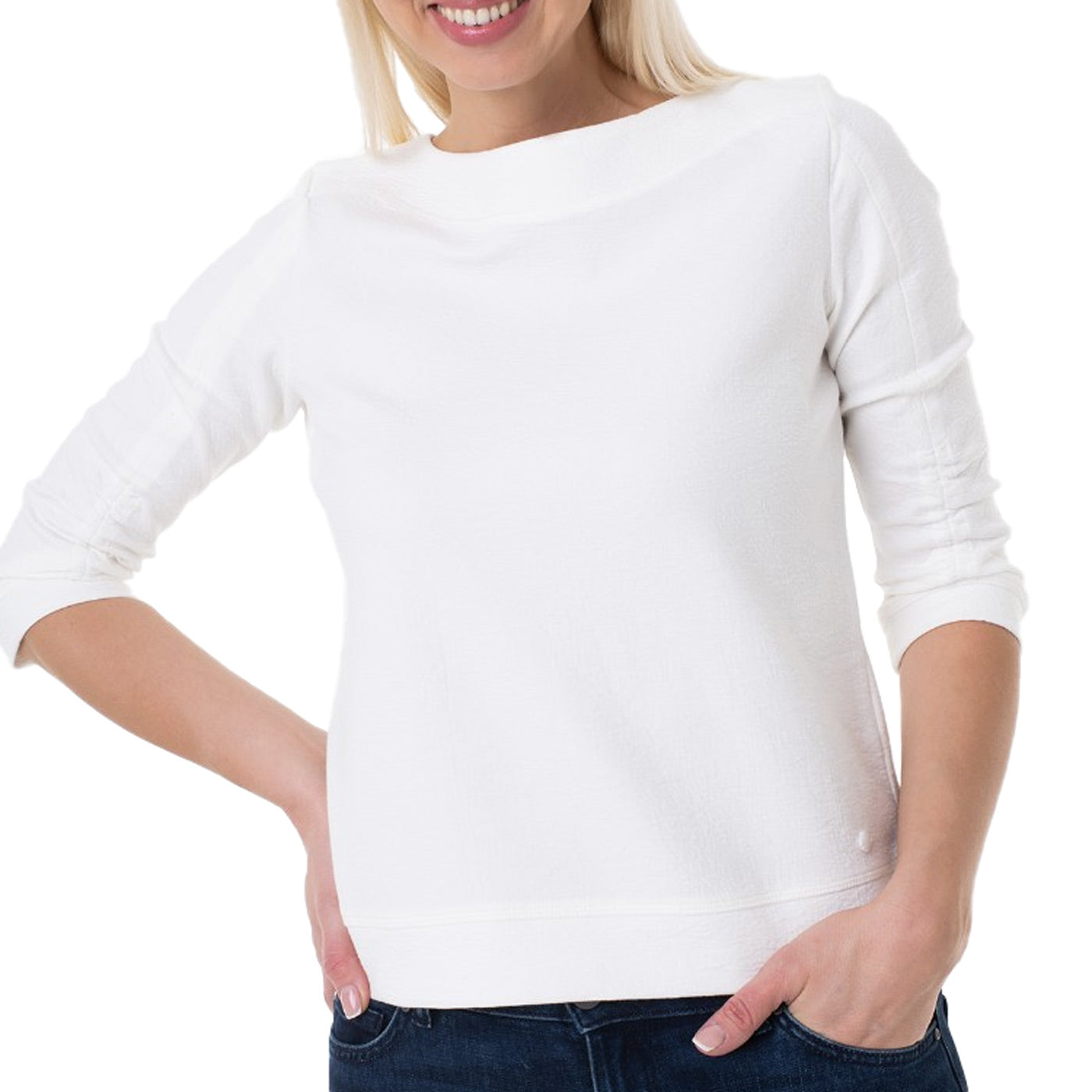 Tom Tailor női hosszú ujjú felső, Fehér színben, kerek nyakkal.