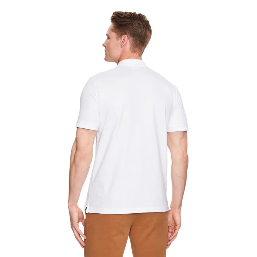 Calvin Klein férfi pólóing, fehér, slim fit fazon, kétgombos plackettel ellátott gallérral, rövid ujjal, bordázott mandzsettával és gallérral, oldalsó sliccekkel, Calvin Klein logócímkével a mellkason.