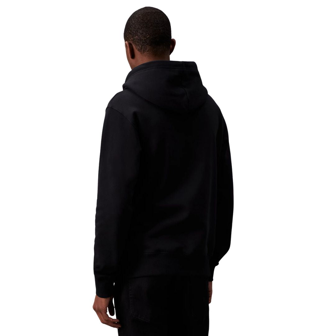 Calvin Klein férfi pulóver, fekete, regular fit fazon, húzózsinóros kapucnival, hosszú ujjakkal, bordázott mandzsettával és szegéllyel, kenguru zsebbel, Calvin Klein monogrammintával a mellkason.