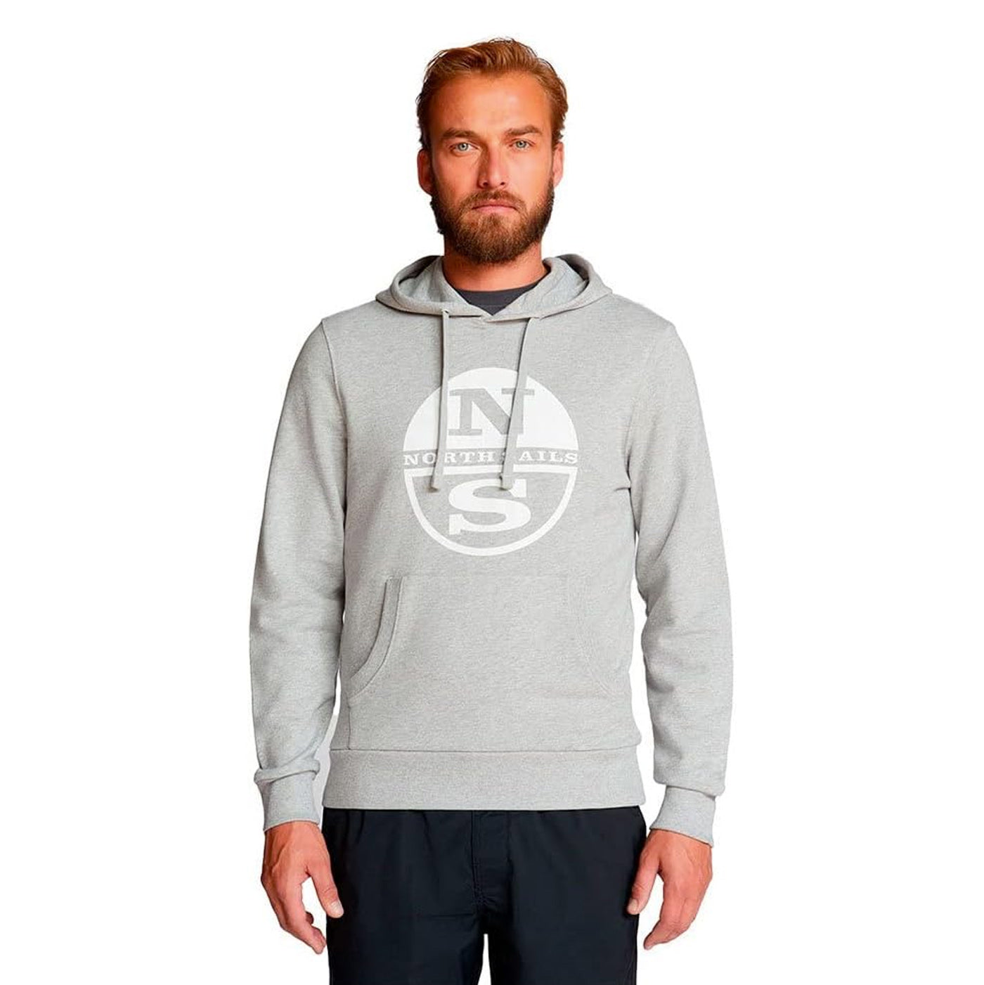 North Sails férfi pulóver, szürke, Regular Fit, kapucnival, cipzáras záródással és nyomott maxi logóval az elején. Bordázott szegélyek adják meg a szabásvonalat, kenguruzsebek biztosítják a teljes funkcionalitást és sportos hatást kölcsönöznek.
