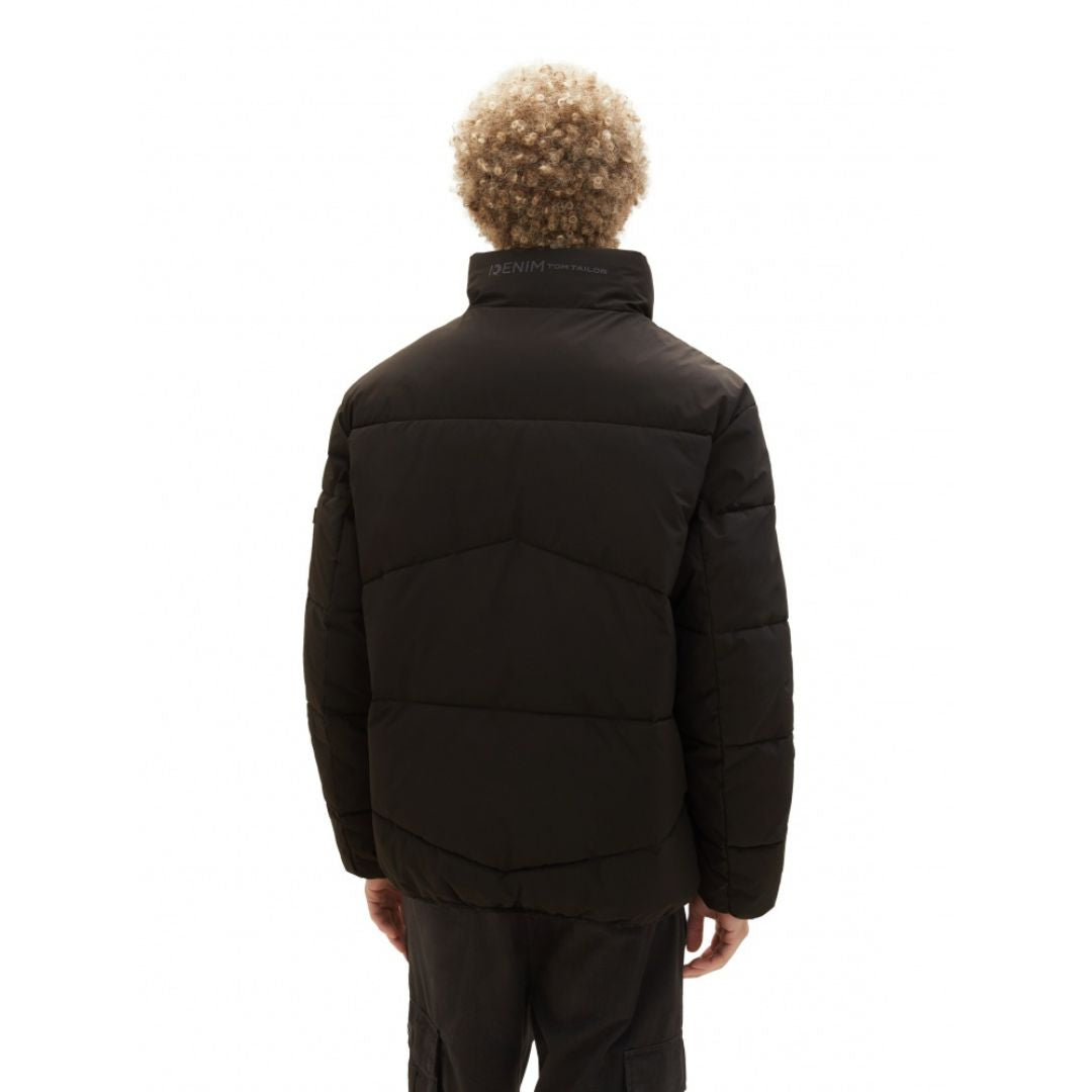 Tom Tailor férfi kabát, vékony, állógallérral, kapucni nélkül, vízlepergető, cipzáras, patentos zsebbel, fekete színben.