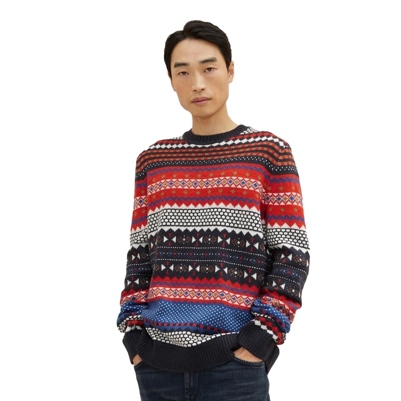 Tom Tailor férfi pulóver, hosszú ujjú, kerek gallérral, többszínű.