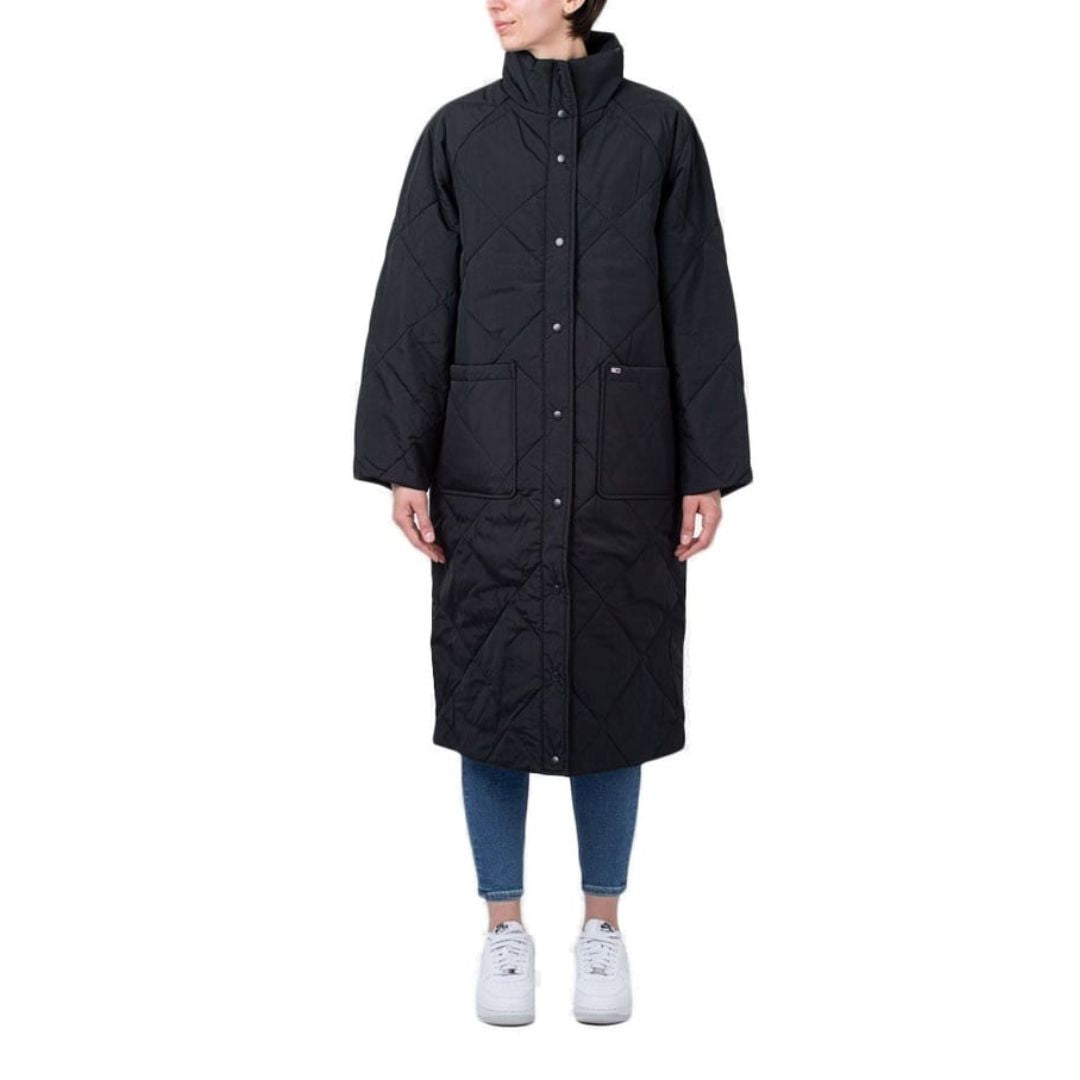 Tommy Hilfiger Jeans női kabát, újrahasznosított poliészter keverék anyagból, vízlepergető anyagból, kapucni nélkül, gombos, zsebes.