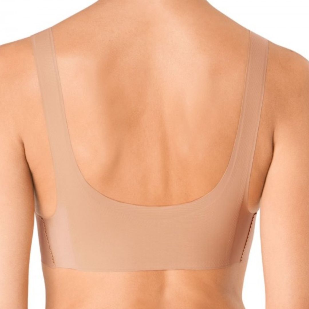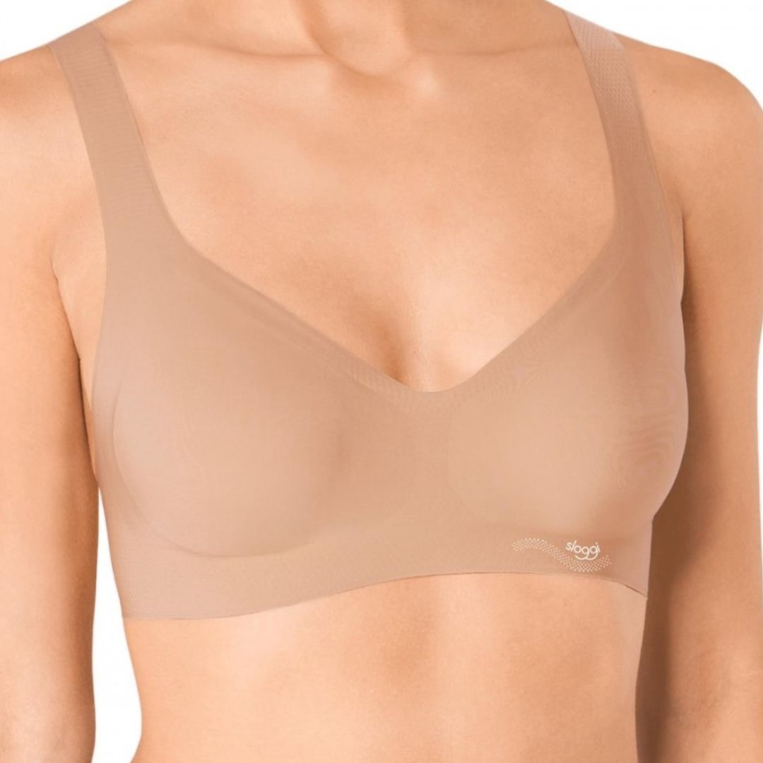 Sloggi női melltartó, barna színű, varrás nélküli, vékony pántos, párnázott, nem merevítős, top fazonú, elasztikus.