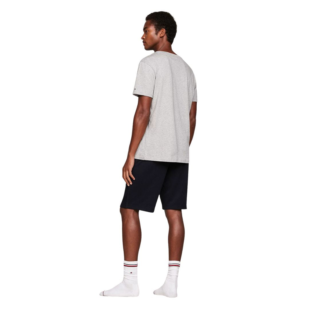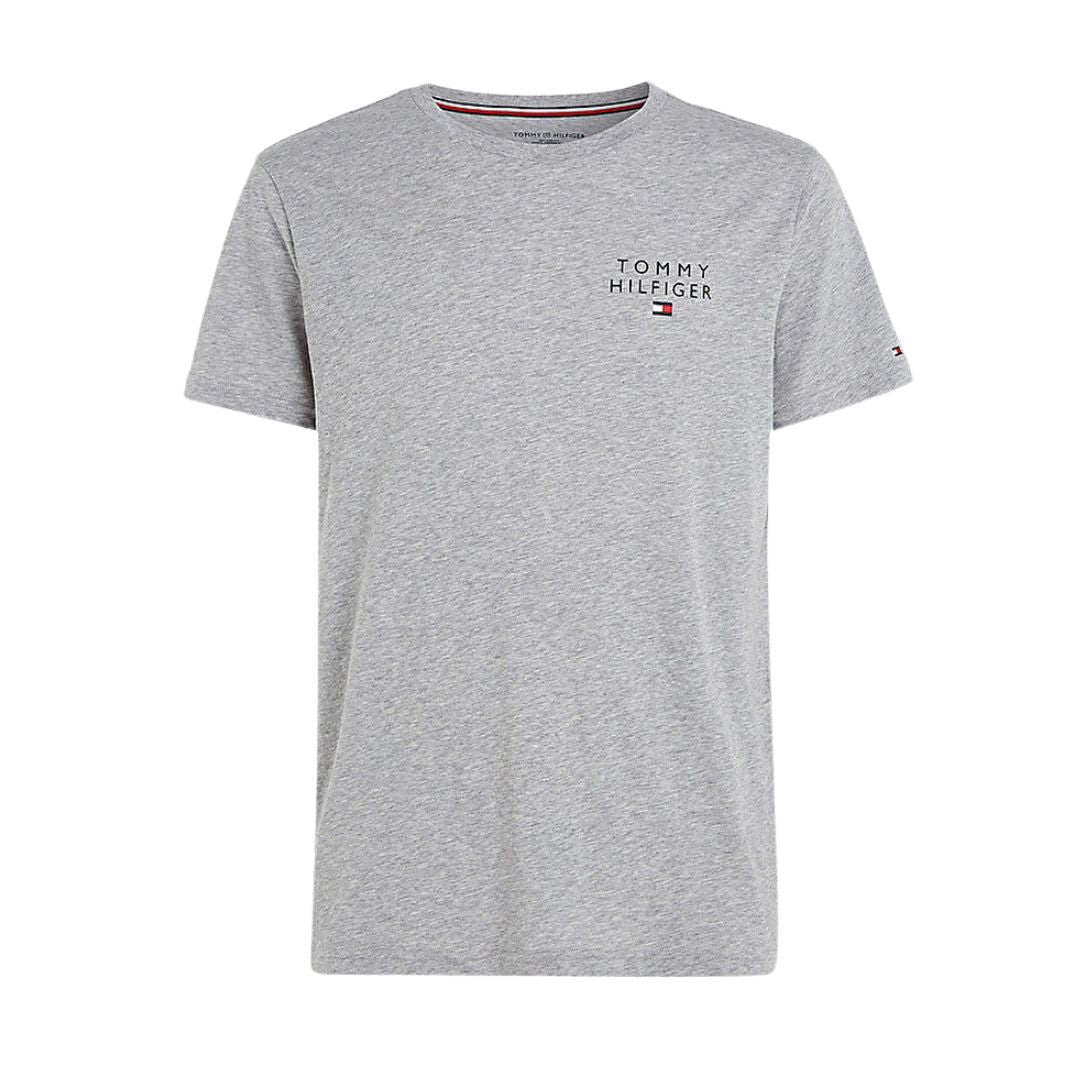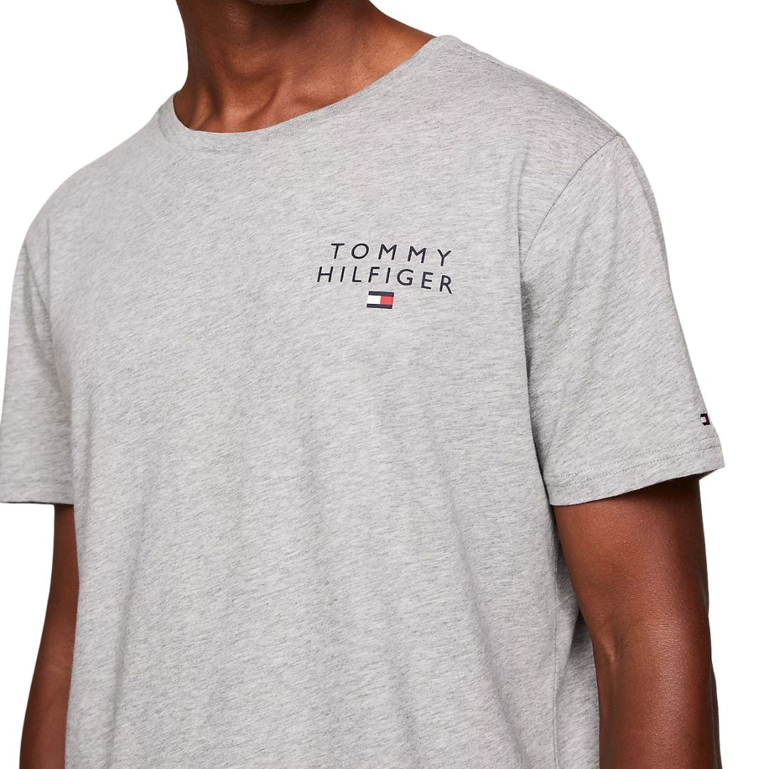 Tommy Hilfiger férfi póló, szürke, kerek nyakkivágással, rövid ujjú, a mellrészen Tommy Hilfiger logóval, az ujjon Tommy Hilfiger zászló hímzéssel.
