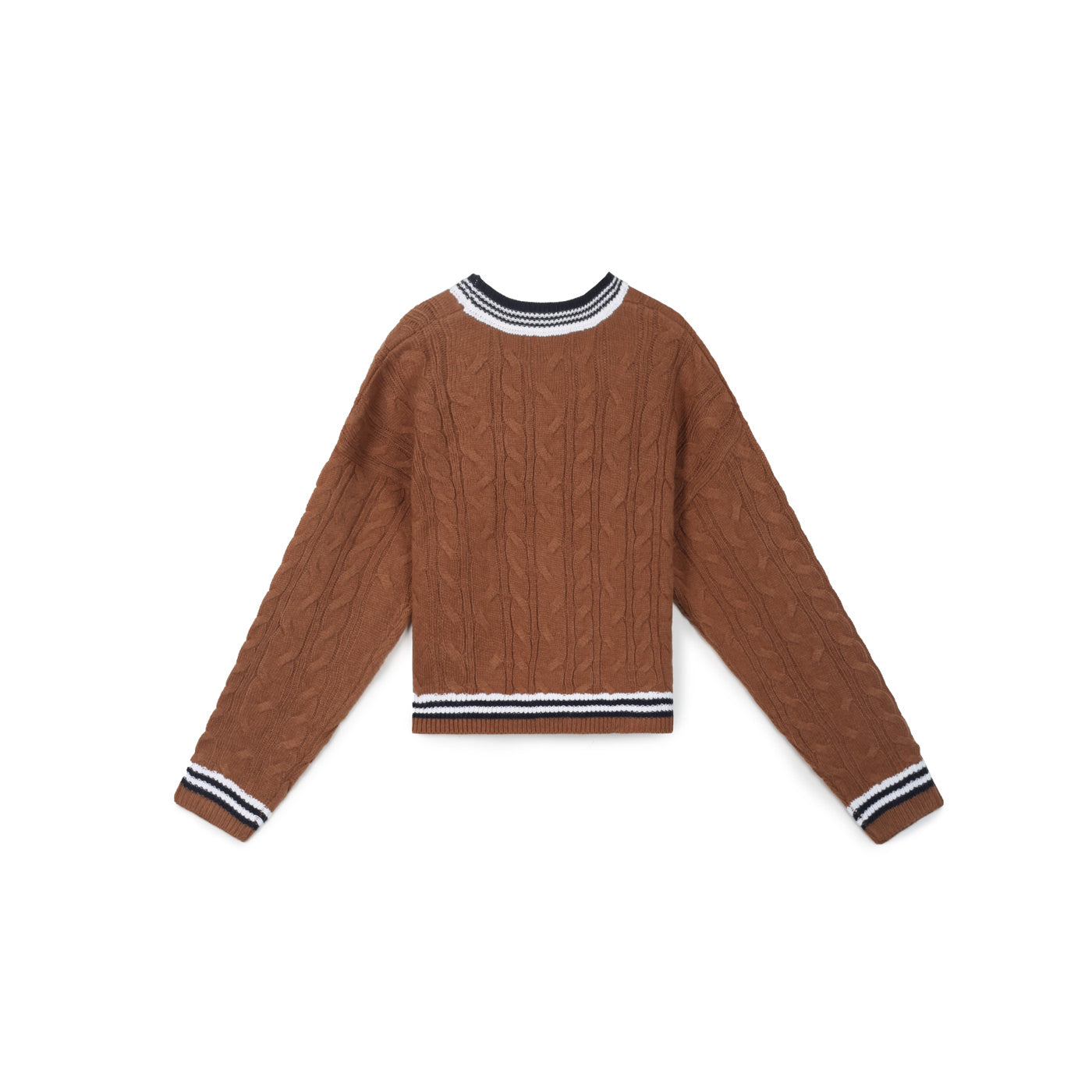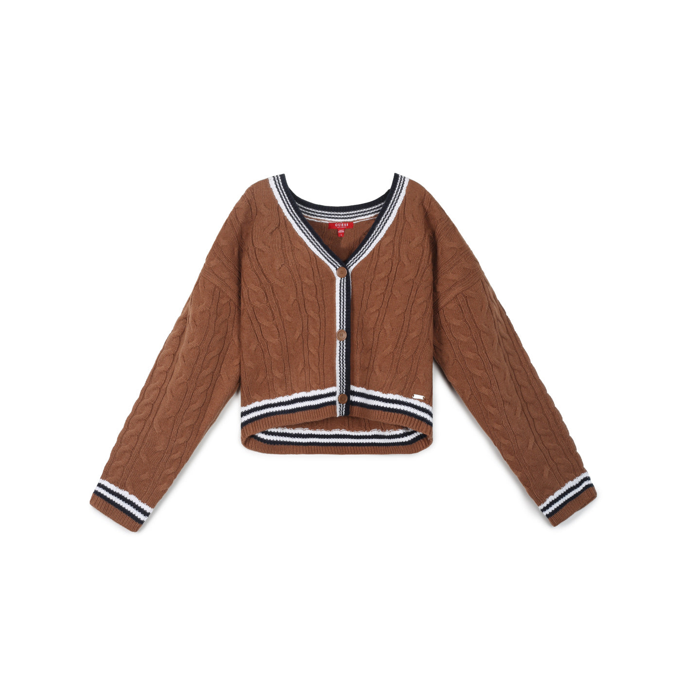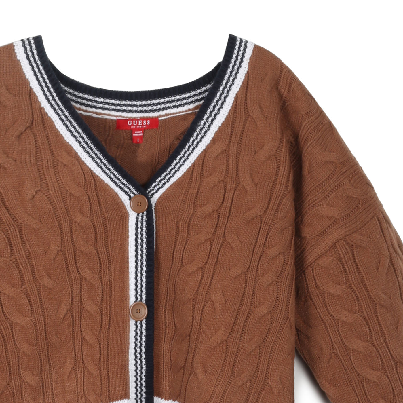 Guess női pulóver, testhezálló, V-nyakú, vékony kötésű, barna színű, anyaga: gyapjúkeverék, gombbal záródik.
