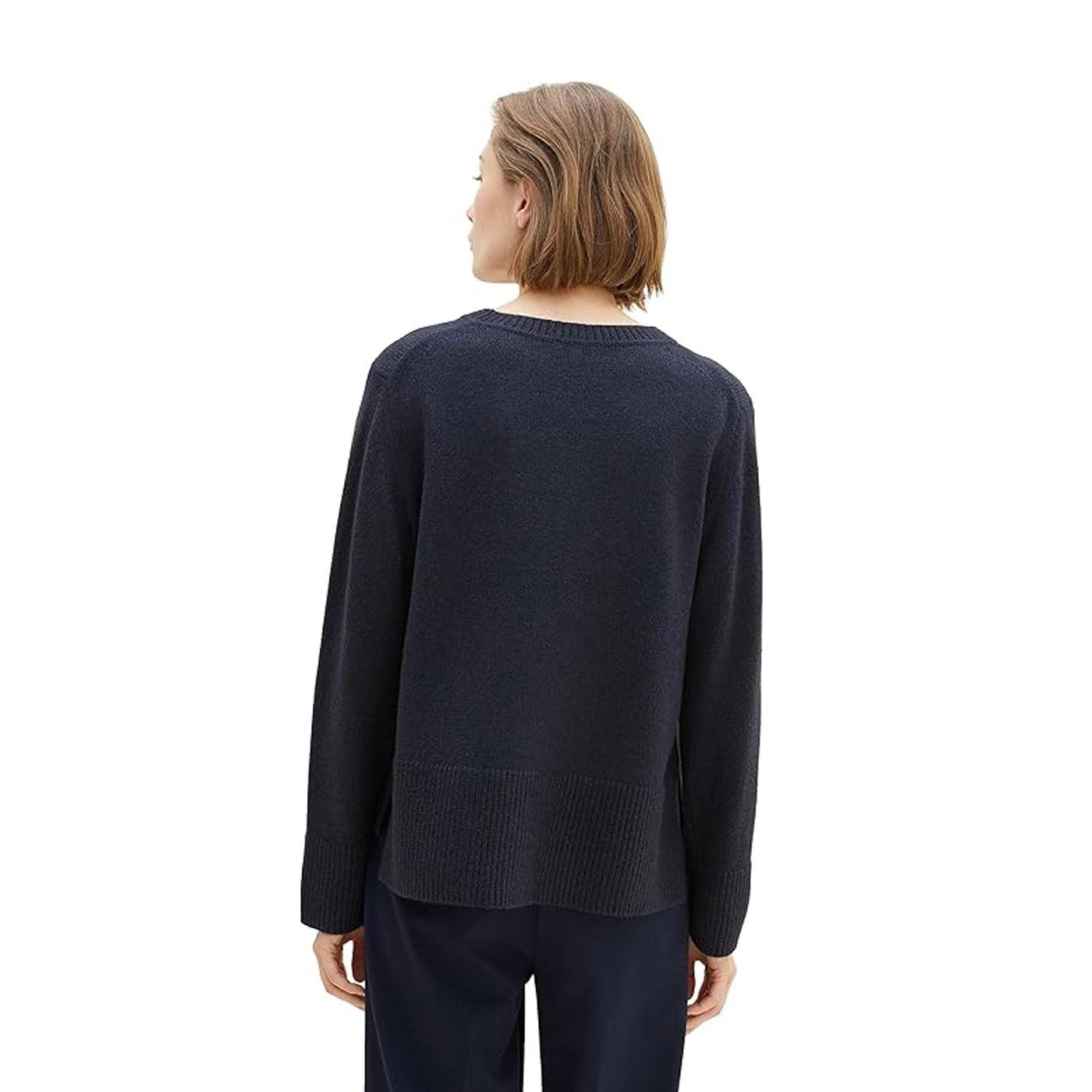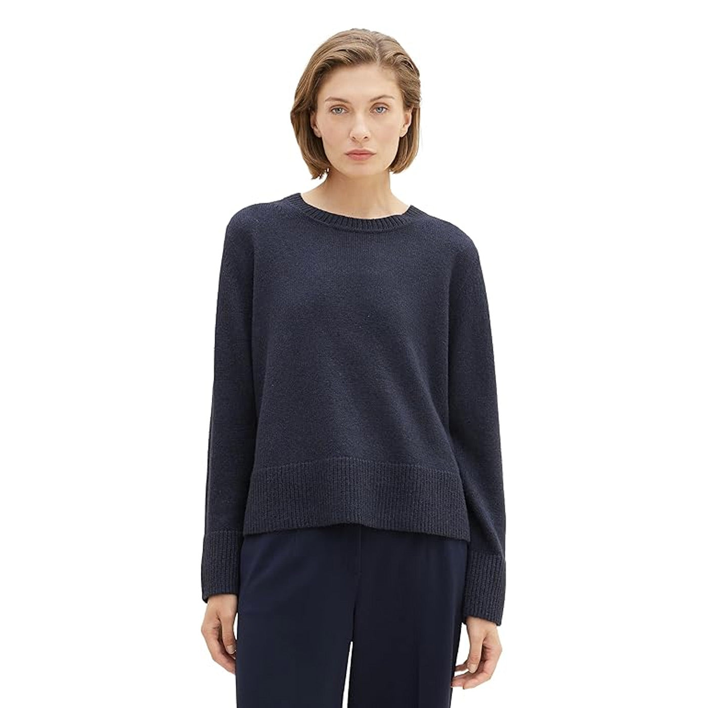 Tom Tailor női pulóver, hosszú ujjú, O-nyakú, oversize fazon, sötétkék.