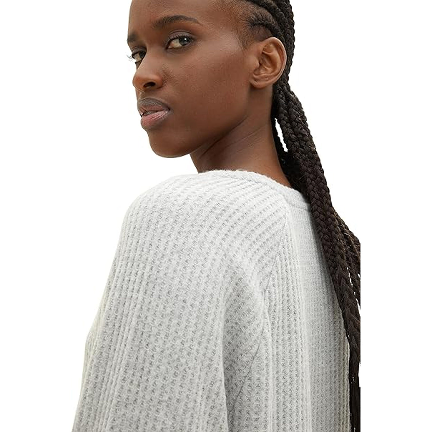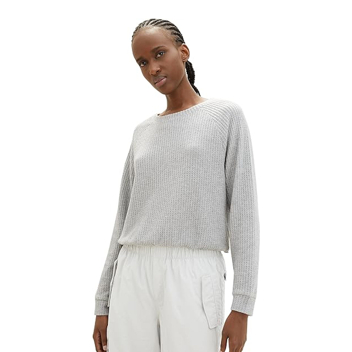 Tom Tailor női pulóver, szürke színű, kerek nyakú, hosszú ujjú.