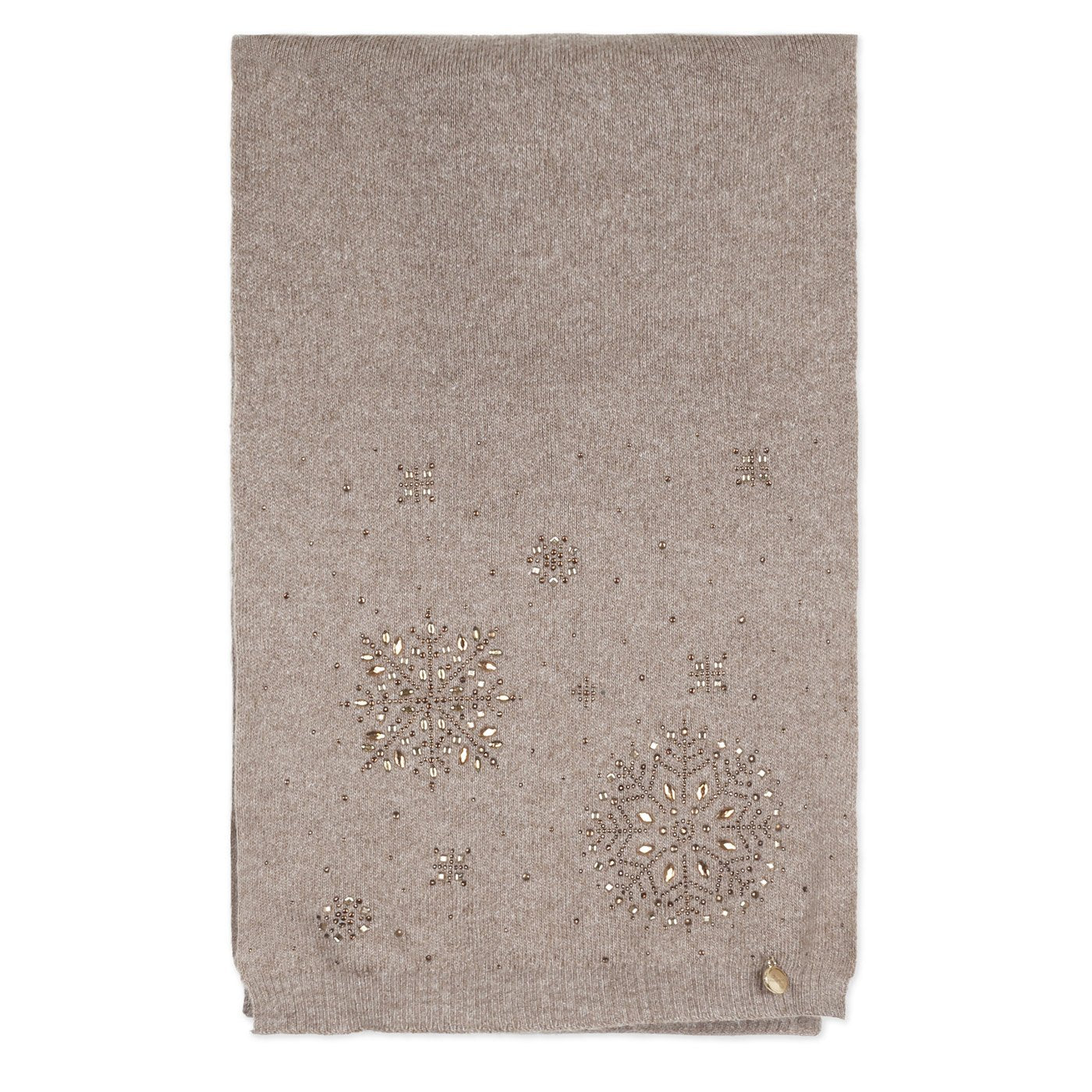 Rinascimento Női szett, vastag kötött, világosbarna színű, strasszsos, fém márkajelzéssel.