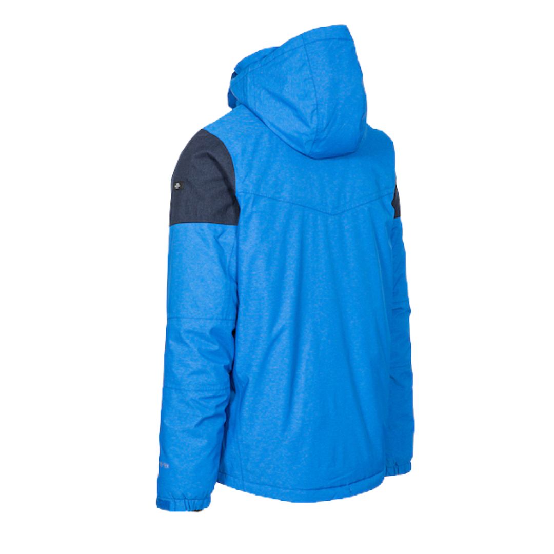 Trespass férfi sídzseki, sötétkék színben. Cipzáras záródású, mintás kivitelű, színkombinációval és logóval ellátva. Az ujjakon funkcionális tépőzáras állítás, hosszú ujjak,Levehető kapucnival és állógallérral rendelkezik,A bélésbe épített szilikon betét fokozza a kényelmet. A varratzáró technológiának köszönhetően szélálló és vízálló kialakítású,Zsebek: öt külső és két belső zseb.Vízállóság: 5000 mm.