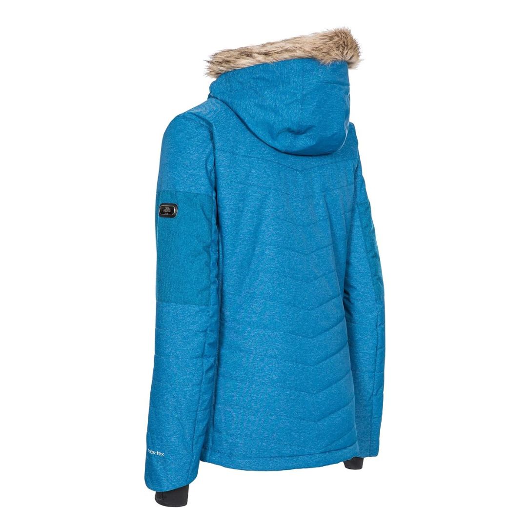 Trespass női sídzseki, kék, kapucnis, normál szabású, vízálló, cipzáras.Anyagtechnológia: TP75,részletek: enyhén bélelt, elöl 2 cipzáras zseb, húzózsinórral állítható alsó szegély, cipzáras síbérletzseb, szorosan záródó belső vihargallérok, állítható mandzsetták csuklóvédőkkel, elöl vízálló cipzár.