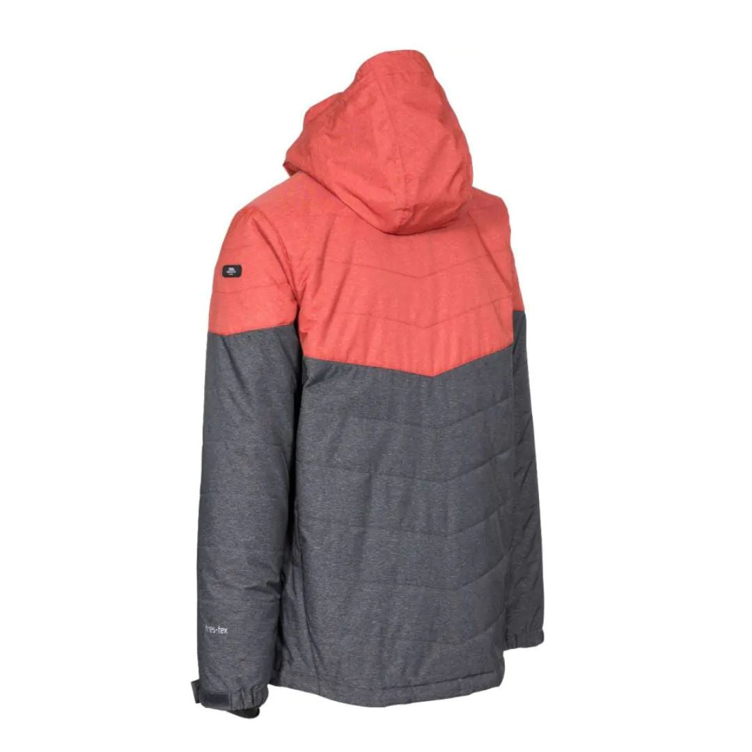 Trespass férfi sídzseki, piros, két kézmelegítő zsebbel, egy zsebbel az ujjon, és kapucnival.
