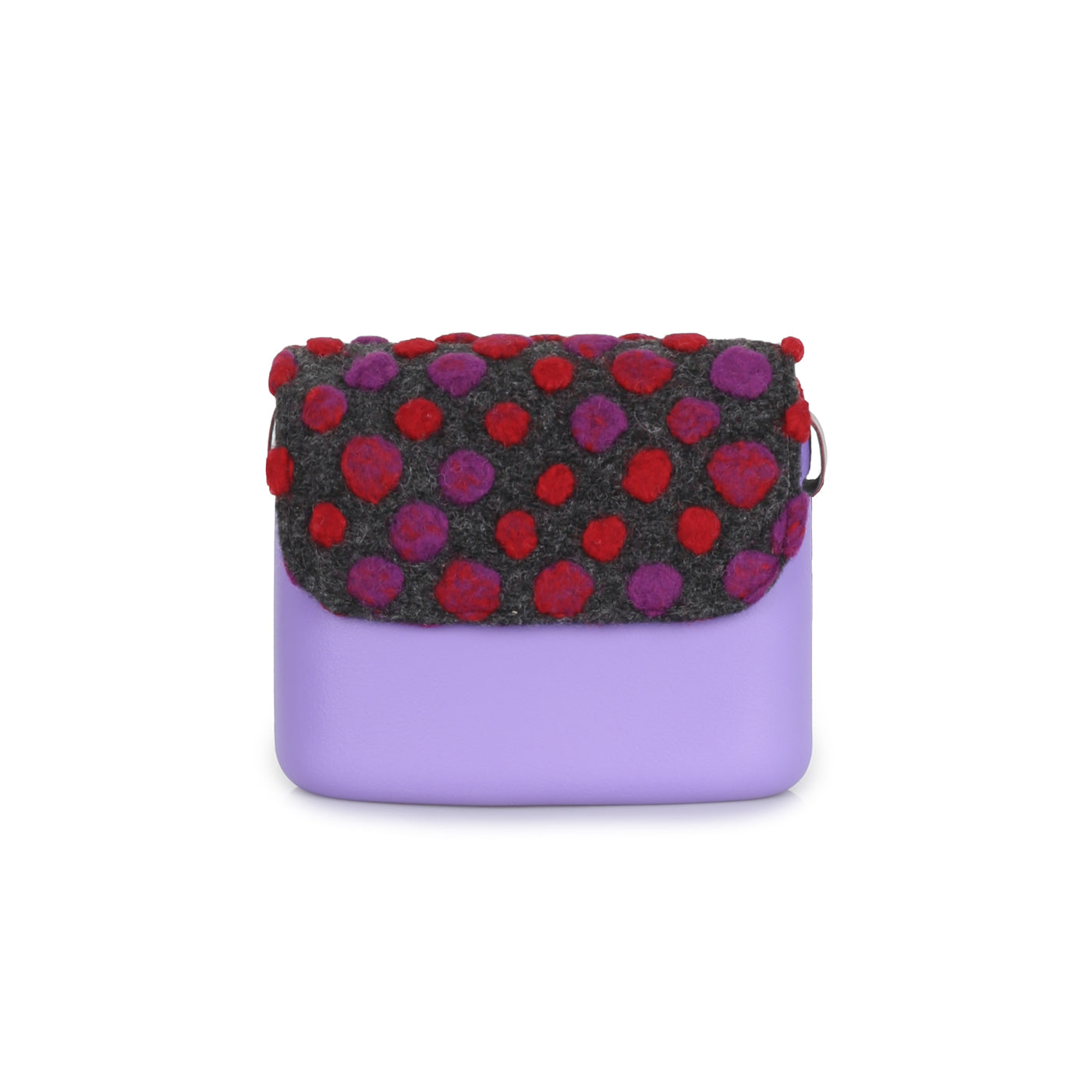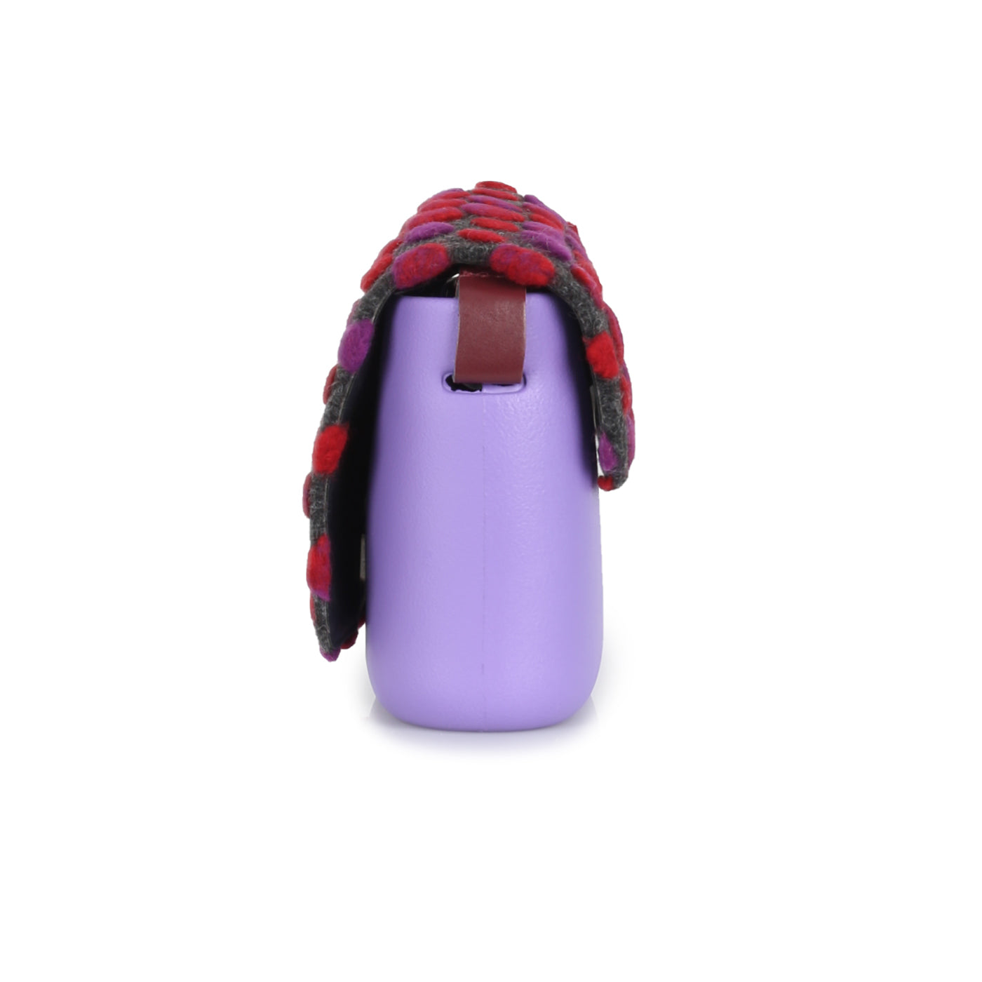 Obag női válltáska, állítható piros színű pánttal, mintás lila színben, méret: 17 x 14 x 5 cm.