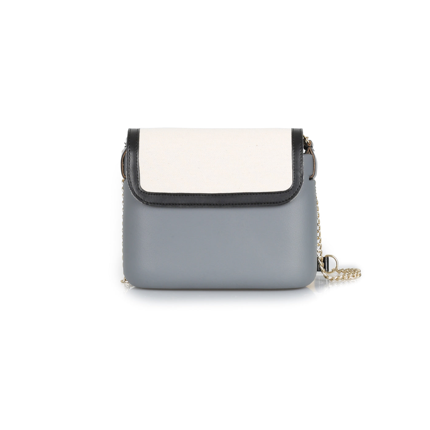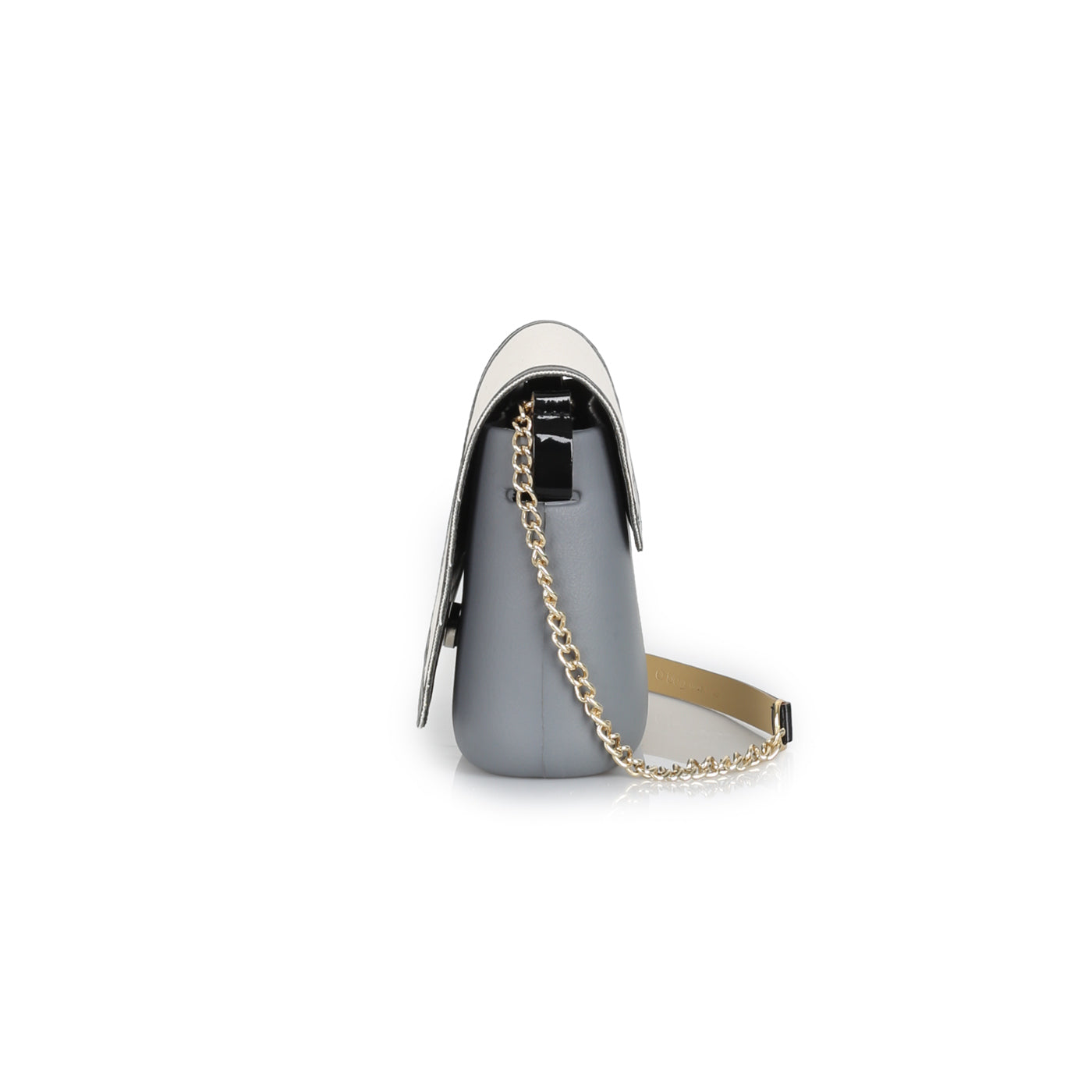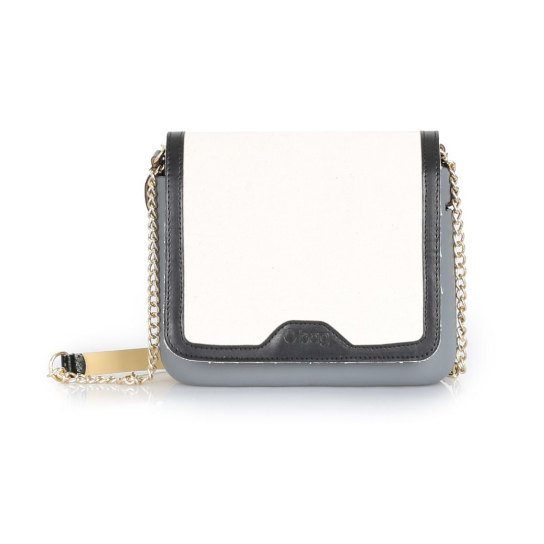 Obag női válltáska, állítható pánttal, szürke és fehér színben, méret: 18 x 14 x 5 cm.