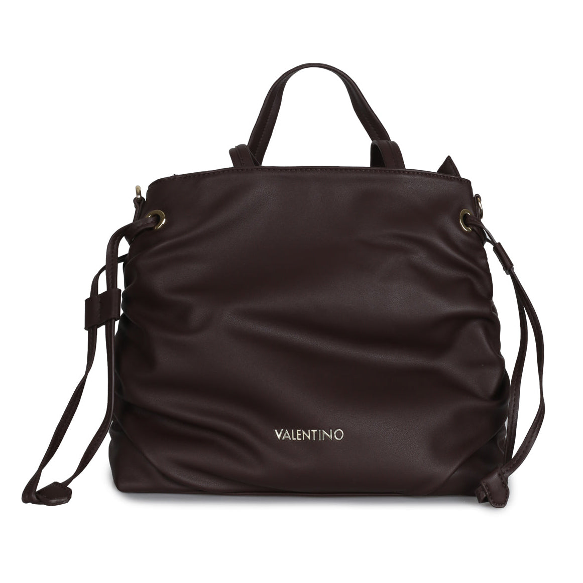 Valentino női válltáska, barna, dupla füllel, egyszínű kivitelben, logóval, cipzáras záródással. Méret: 35 × 29 × 15 cm.