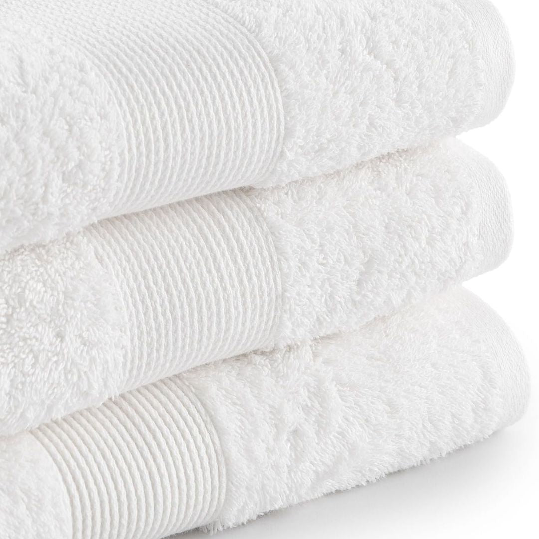Elegáns, fehér színű, 70x130 cm méretű, 430 g/m² súlyú pamut törölköző.
