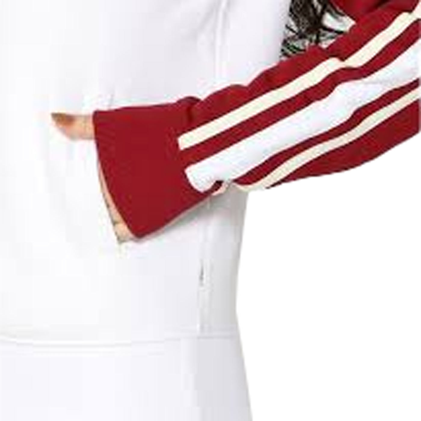 Guess női kardigán, fehér és bordó színben, hosszú ujjú, rövid szabású, kapucni nélküli, zsebekkel, márkajelzéssel, cipzárral záródó.