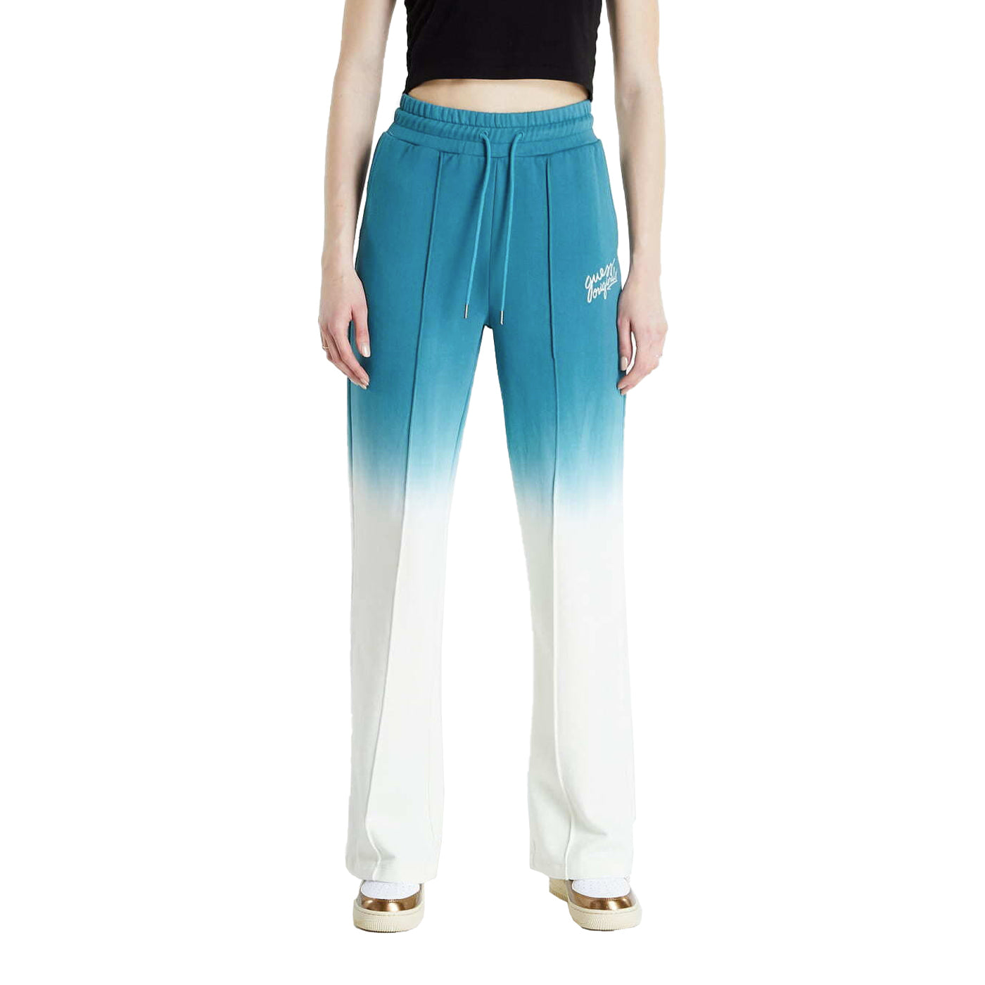 Guess női sportnadrág, fehér és kék színben, hosszú fazonú.